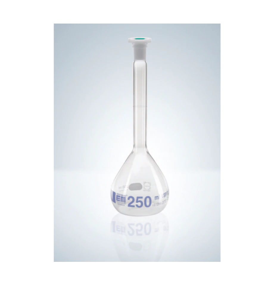 Class A, USP. DURAN®. IN (TC) calibrated. With dated batch identification. With declaration of conformity acc. to DIN 12600. With NS-ground and poly stopper. High-contrast blue graduation. Batch Certificate of Performance, Individual USP-Certificate of Performance and a DAkkS-Certificate (former DKD Calibration Certificate) are available on request.
